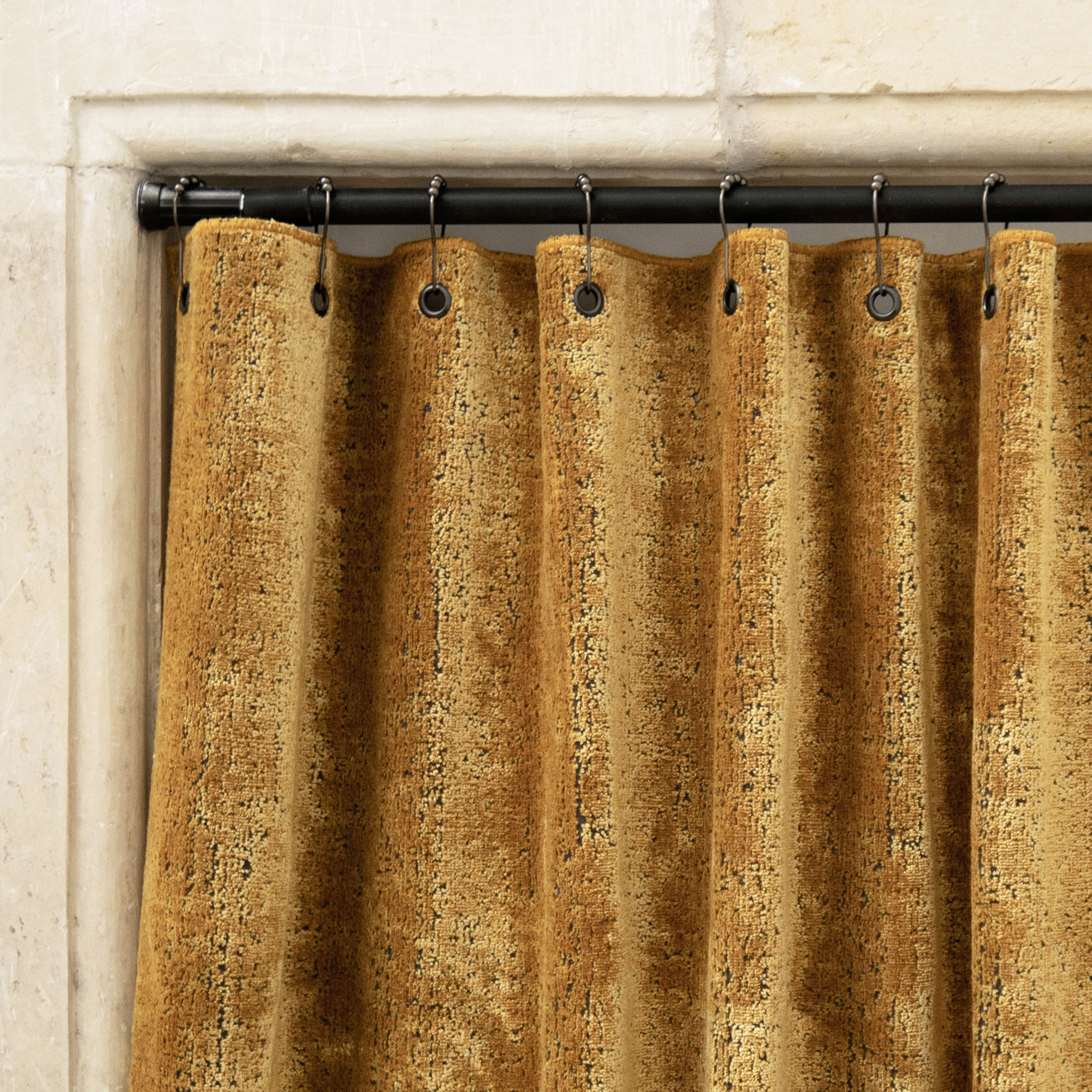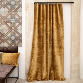 Rideau en velours épais dont le tissage restitue l'aspect déjà usé dans une finition originale.