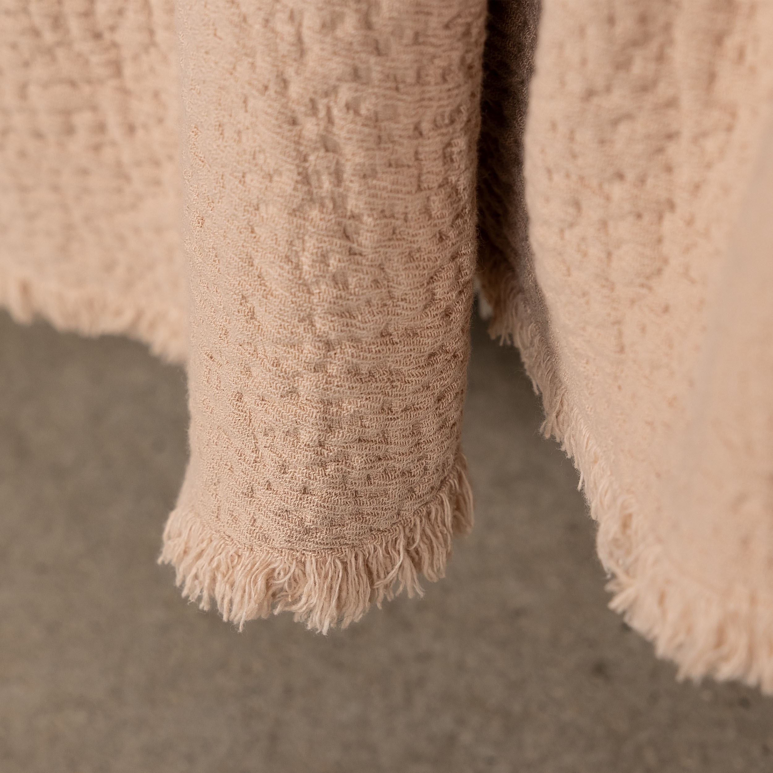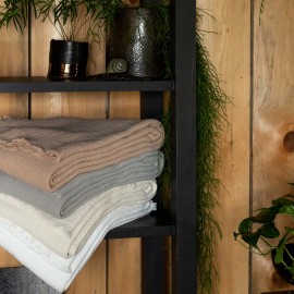 Plaid frangé en piqué coton, gonflant et doux.