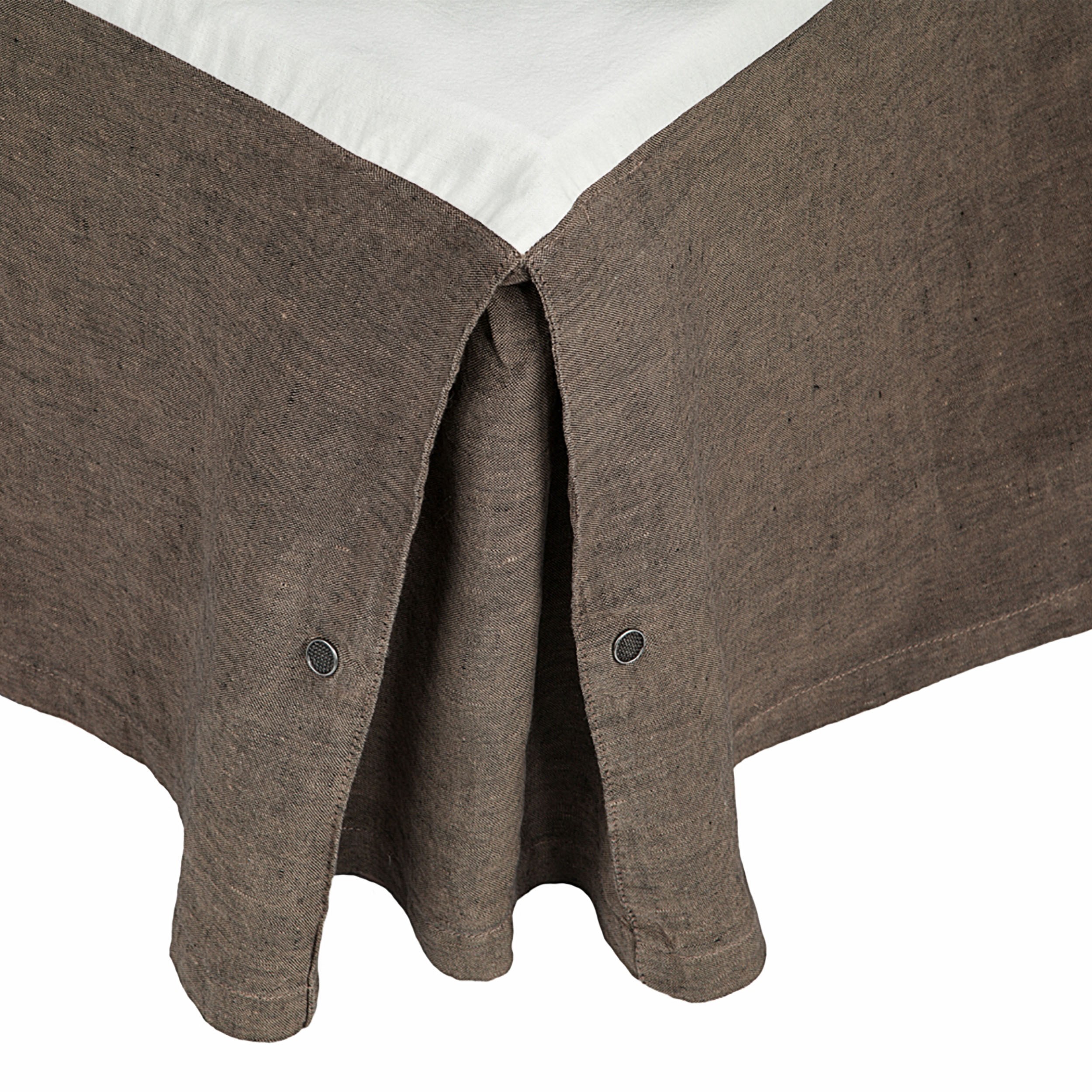 Les caches sommiers sont composés d’un plateau coton qui repose sur le dessus du sommier et d'une jupe à 3 volants 100% lin d’une hauteur de 30cm.