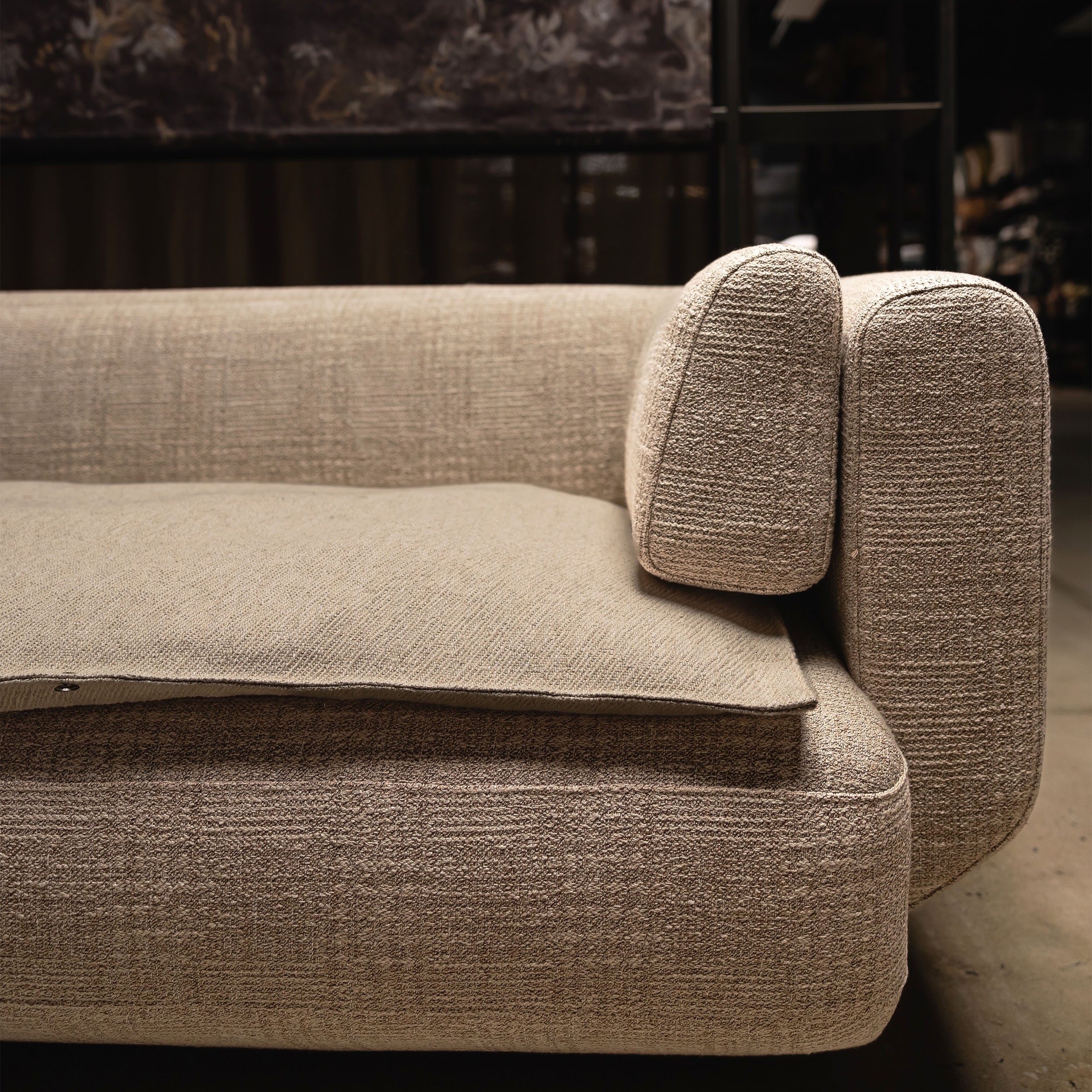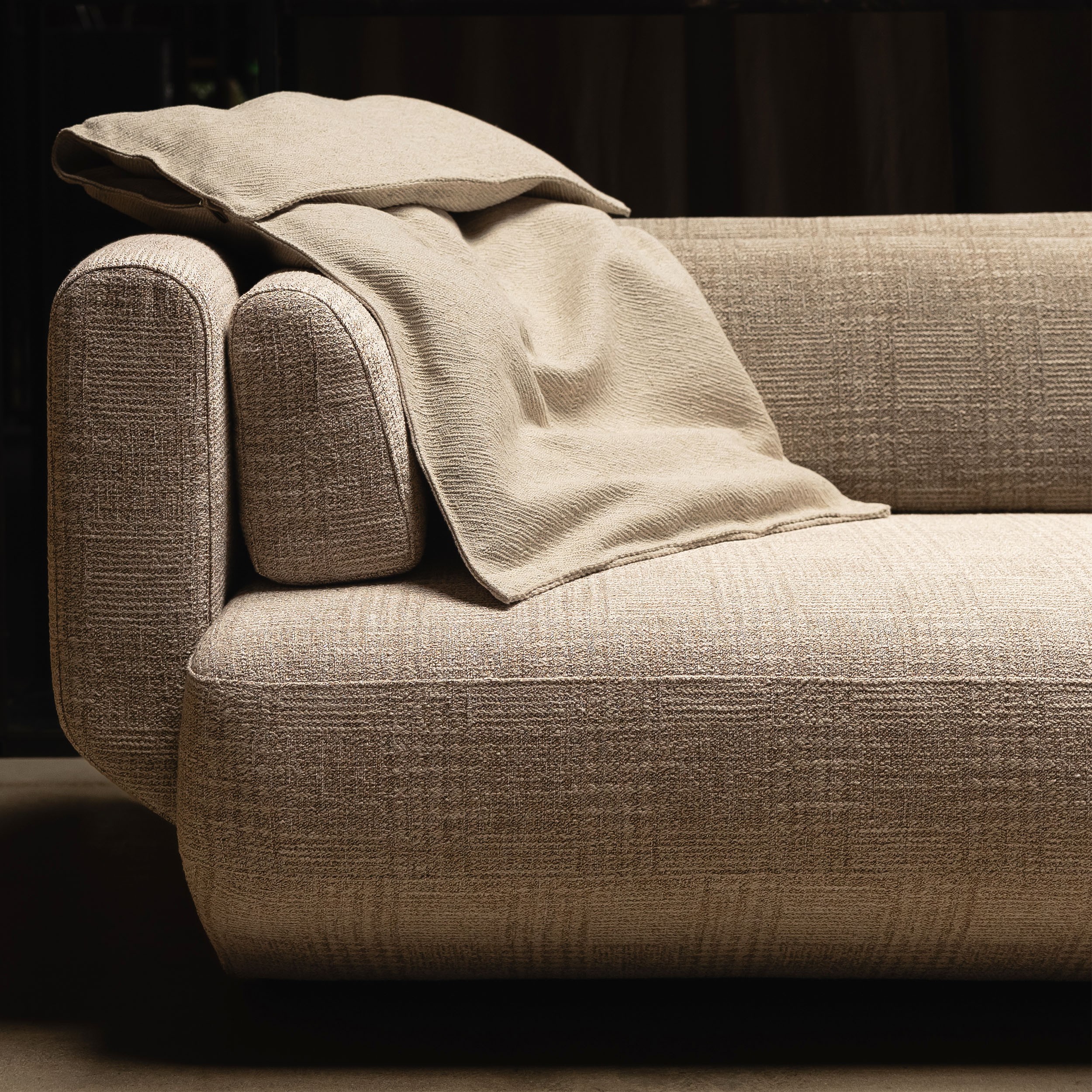 Canapé Lissoy aux lignes droites évocatrices de force, de tranquillité et de spiritualité, aux lignes diagonales synonymes de dynamisme et de progression, en passant par les lignes courbes et les formes arrondies, symbole de plénitude, de féminité et de délicatesse. Toutes ces lignes convergent et mettent en exergue la recherche passionnée du détail et confortent un sentiment positif et rassurant