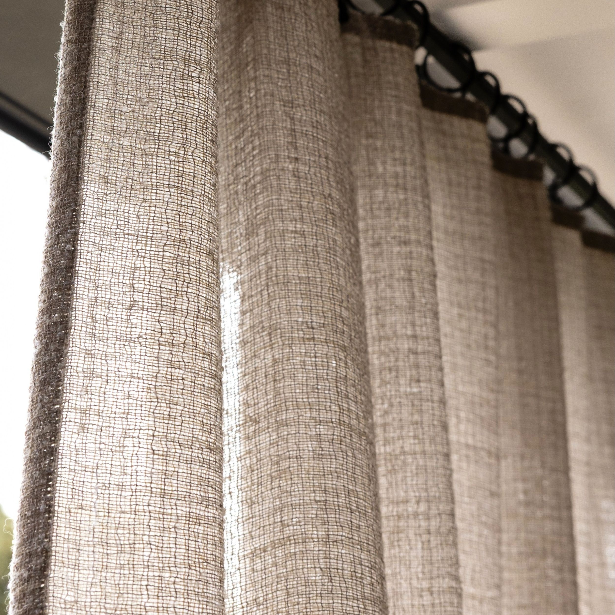 La légèreté et la fluidité de ce tissage de laine pour des rideaux très originaux. Cette collection se décline en quatre coloris et deux dimensions. Vous pouvez choisir entre des franges décontractées et un rabat en partie haute qui soulignent l'aspect brut du tissu ou des coutures tout autour. La suspension se réalise avec les anneaux en vente séparément.